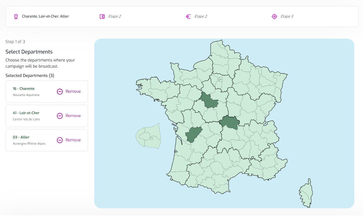 Choisissez un dispositif sur la carte pour voir ses détails et l'ajouter à votre sélection.