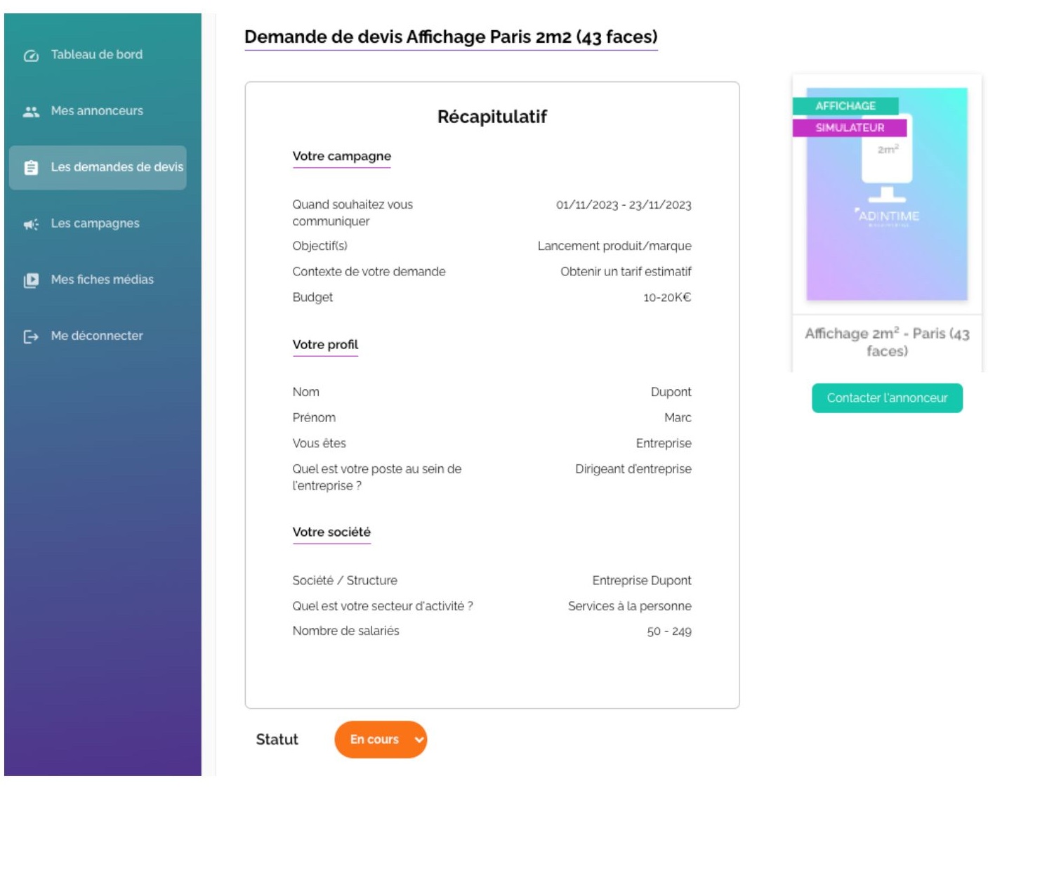 Choisissez un dispositif sur la carte pour voir ses détails et l'ajouter à votre sélection.