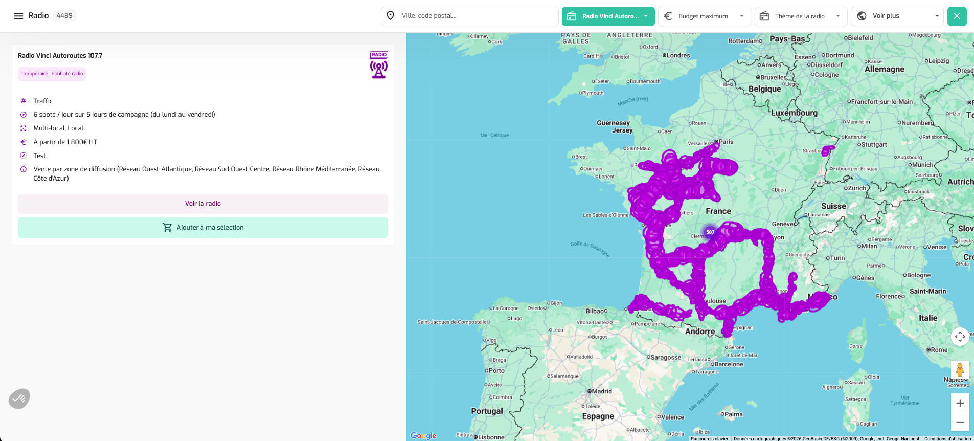 Choisissez un dispositif sur la carte pour voir ses détails et l'ajouter à votre sélection.